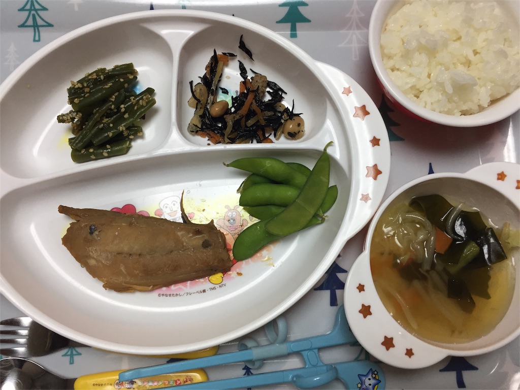 4歳ごはんも、引き続き魚メニューが多めで野菜はスープ頼りになっています(*´-`)